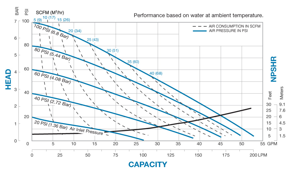 | Heads Up To | 100 psi or 231 ft. of water (7 bar or 70 meters) |